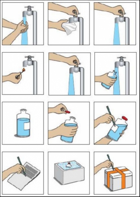 Seguem abaixo os passos para efetuar corretamente a coleta da amostra: